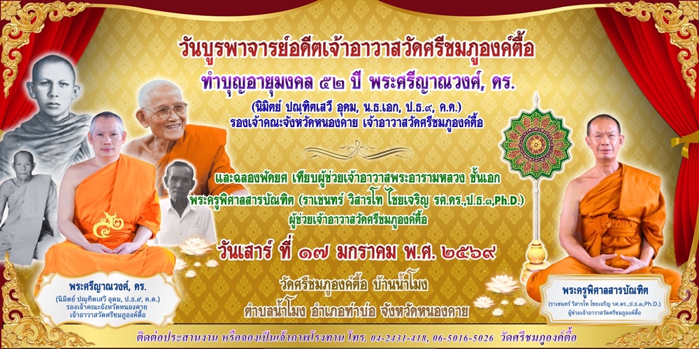 งานวันบุรพาจารย์, อายุมงคล ๕๒ ปี พระศรีญาณวงศ์, ดร. และฉลองพัดยศพระครูพิศาลสารบัณฑิต,รศ.ดร. (ทผจล.ชอ
